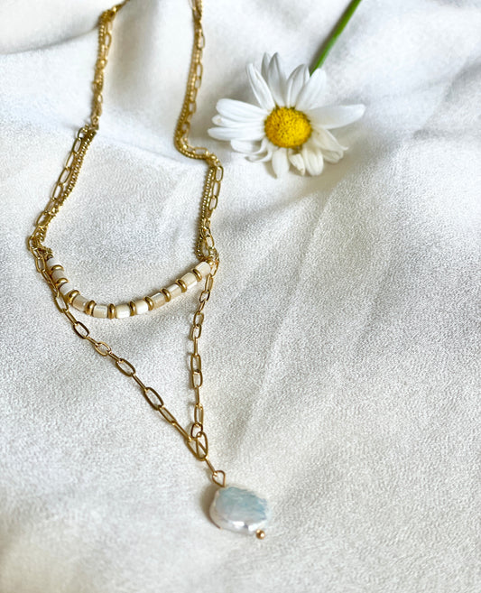 UitverkochtNECKLACE PEARL GOLD - KETTING