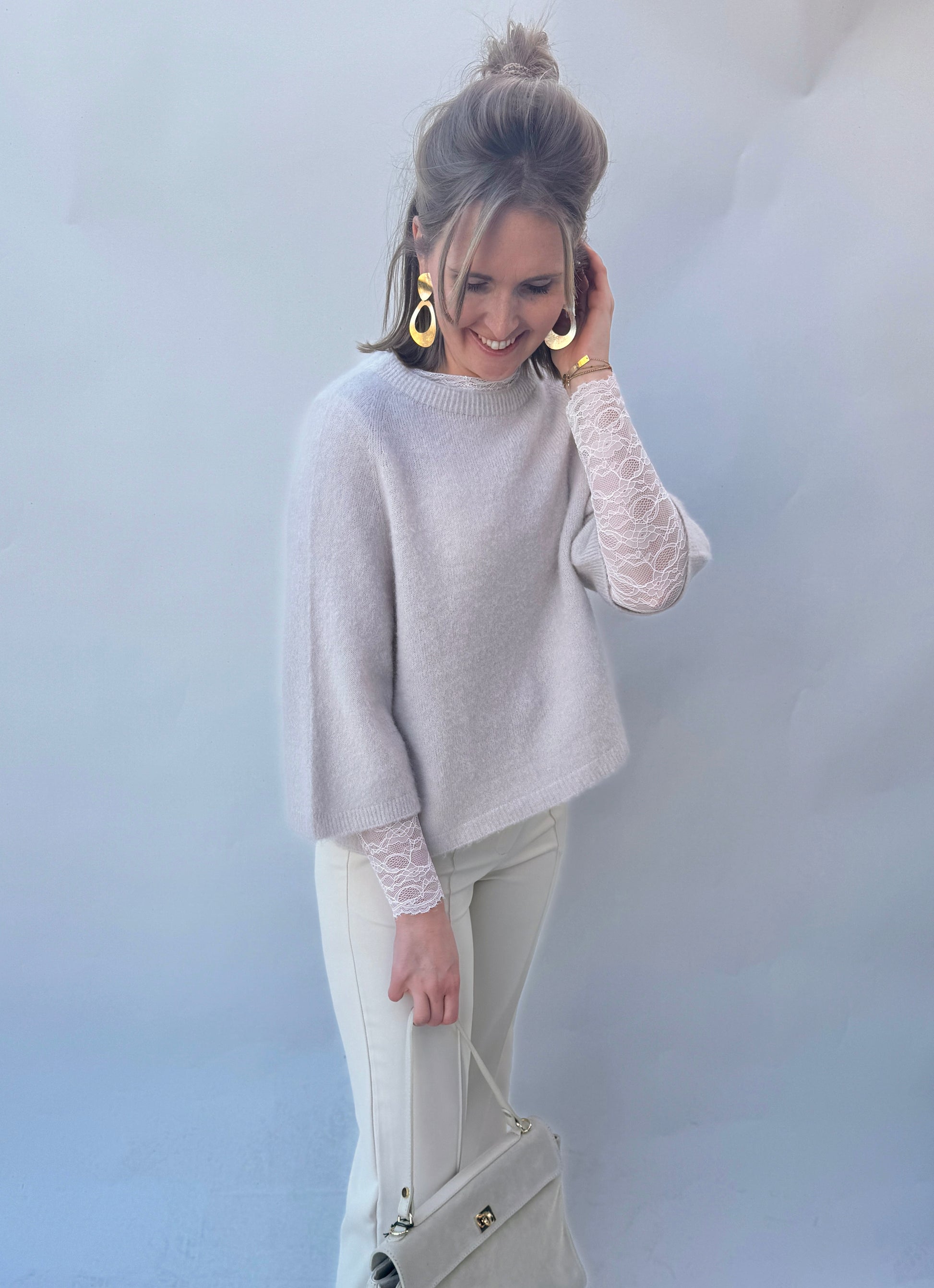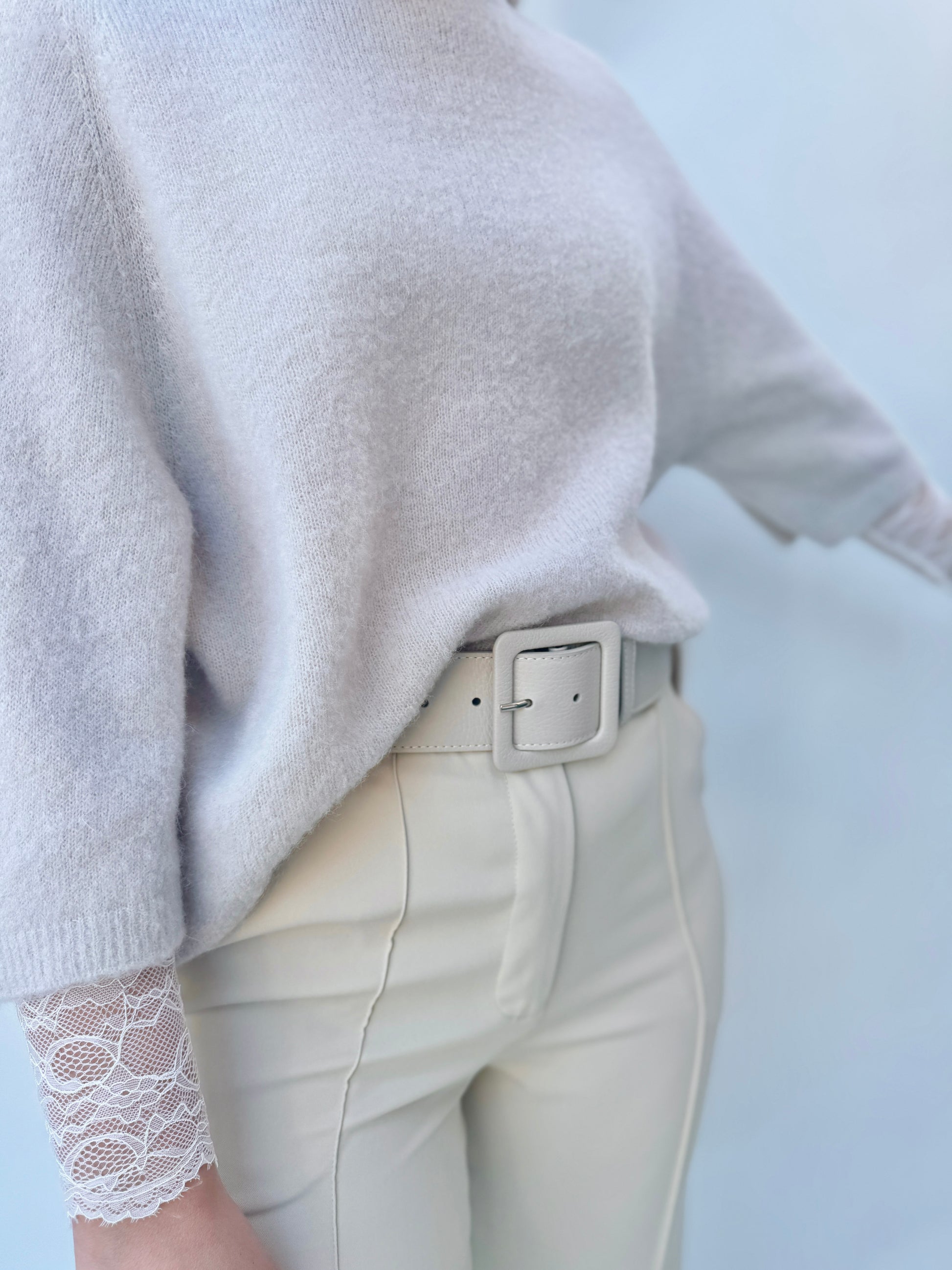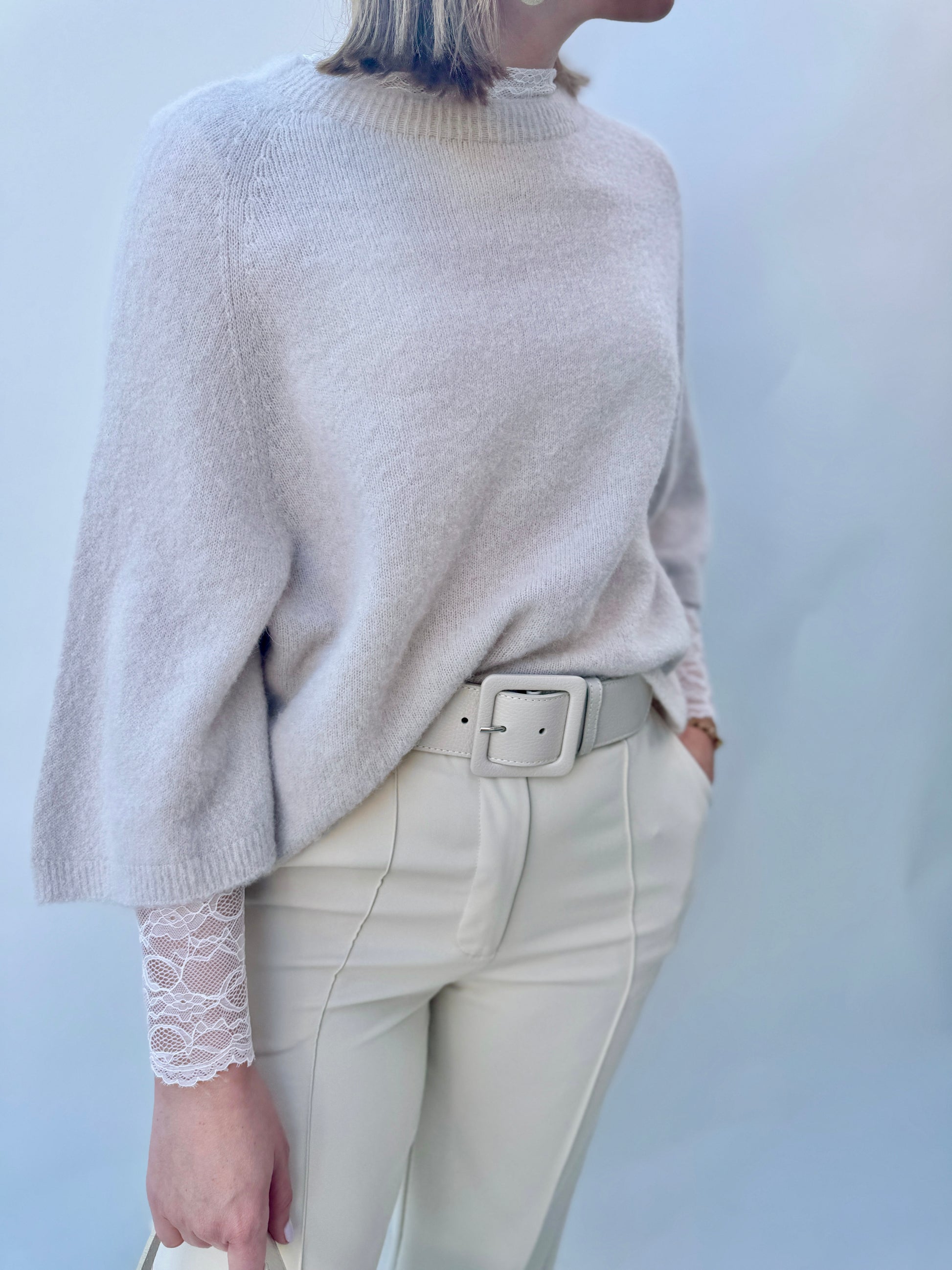 Dit lange mouwen kanten truitje is de ideale combinatie van elegantie en vrouwelijkheid. De fijne kanten details geven het een romantische uitstraling, terwijl het zachte materiaal en de lange mouwen voor optimaal comfort zorgen. Perfect om te dragen onder een truitje met kortere mouwen of een gilet. Ook ideaal te combineren met onze prachtige blazers voor een chique en veelzijdige look!.